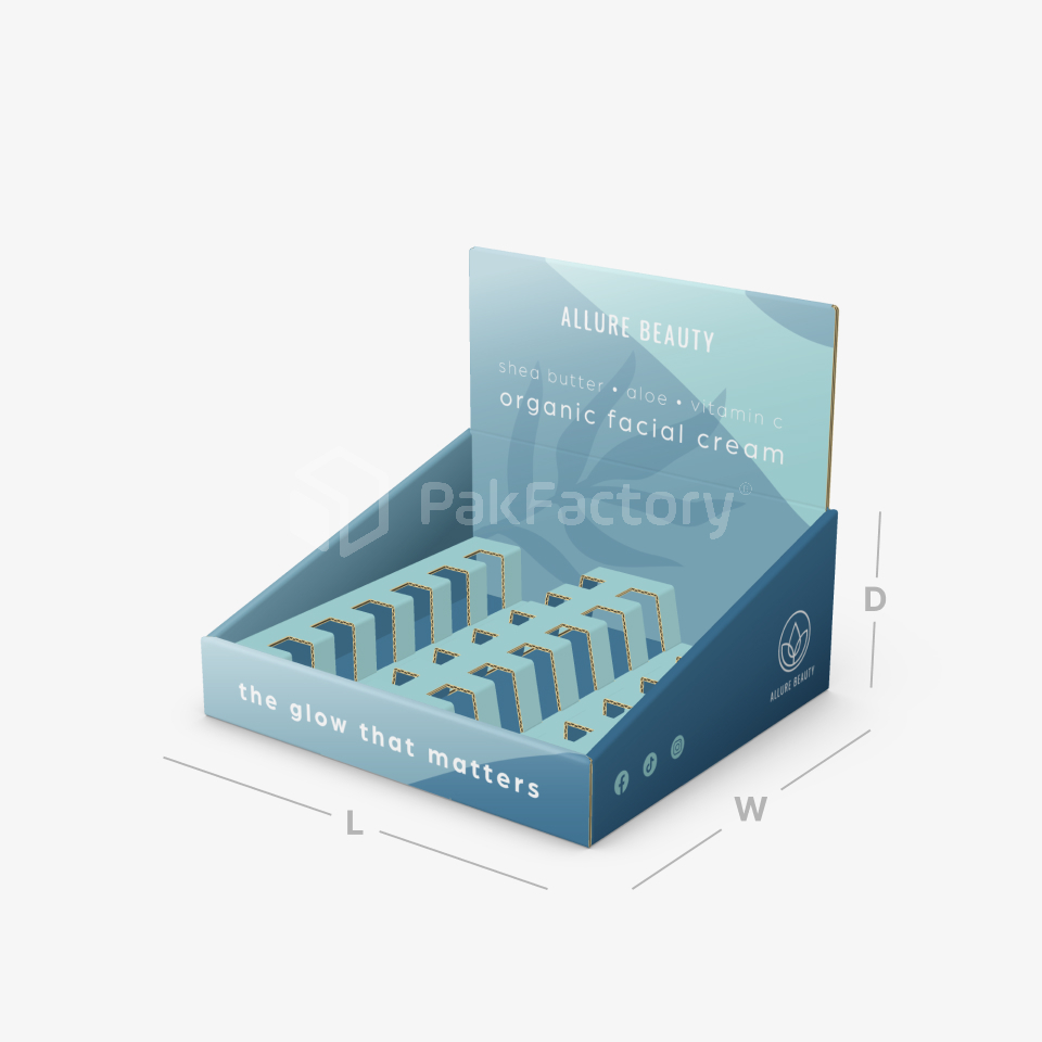 A standard counter top display with custom designed inserts. Perfect for displaying your products at any point of purchase or checkout.