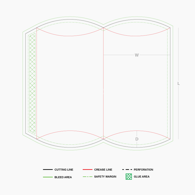 A curved shaped box with overlapping flaps for closure. Perfect for small gifts, jewelry or accessories.