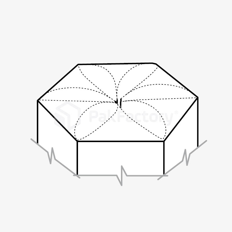 Unique design that features flaps that interlock to create a flower that seals the top.